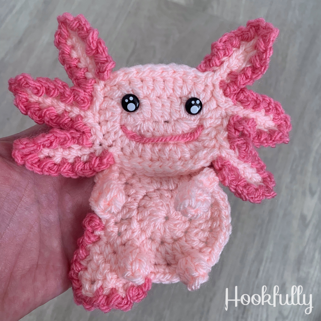 - Free version available at https://hookfully.com/free-crochet-axolotl-applique-pattern/