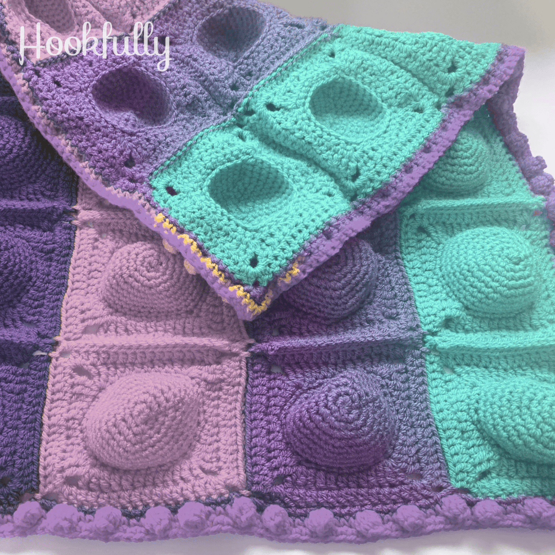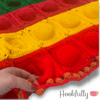 A crochet pattern for a bubble burst fidget blanket for kids.
