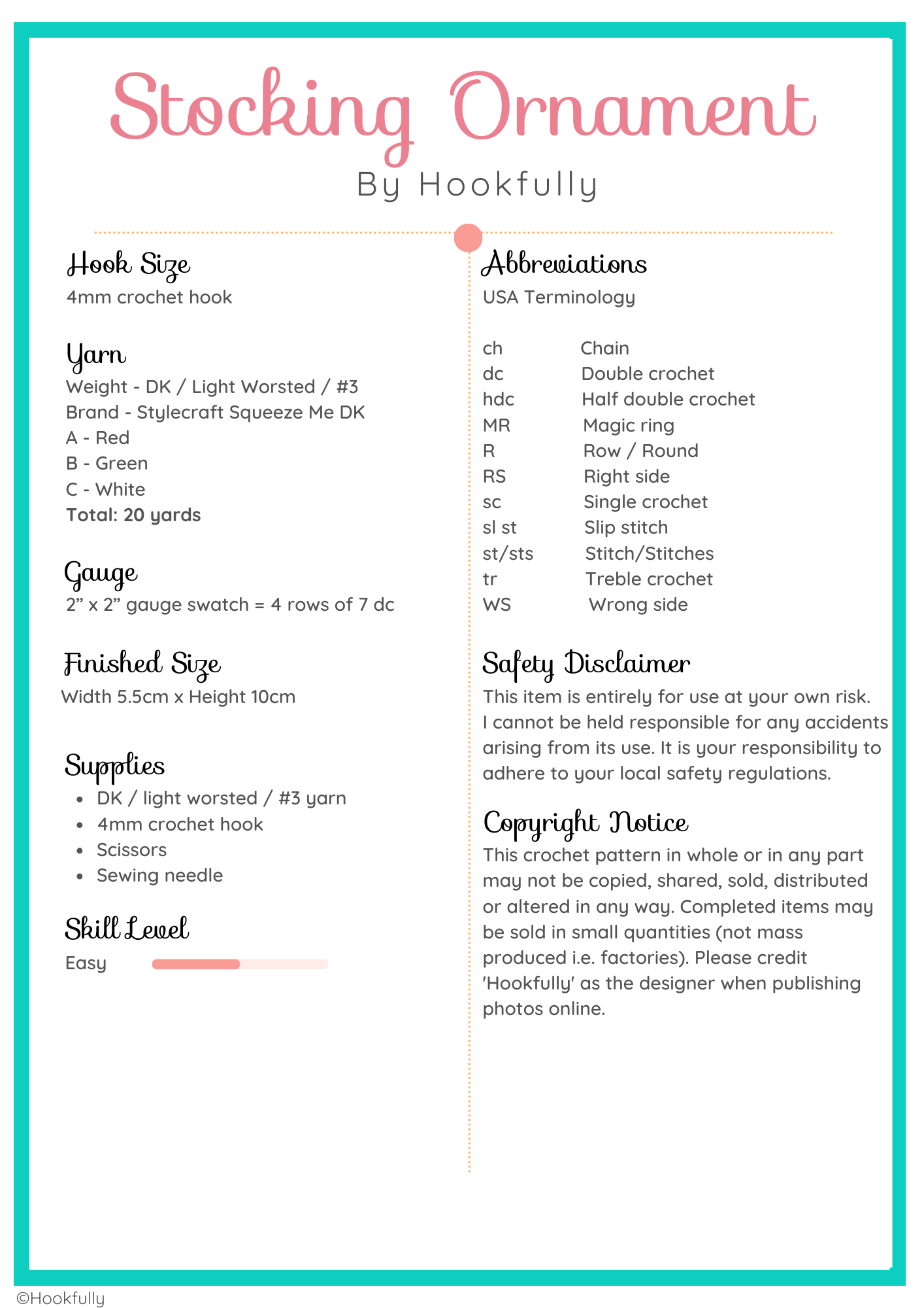 A crochet pattern for a Christmas Stocking Ornament