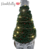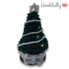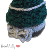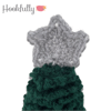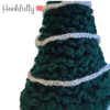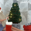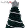 A crochet pattern for a textured Christmas tree decoration with a star topper and bow trunk.