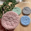 A crochet pattern for eco-friendly, reusable cotton wool pads for removing make-up and cleansing skin.