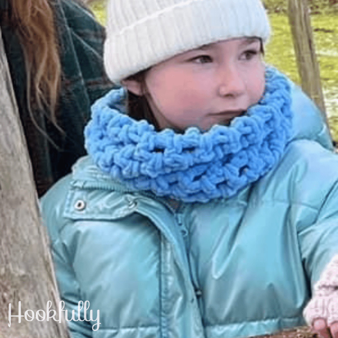 A crochet pattern for a quick and easy cowl for children or adults.