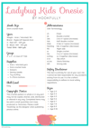 A crochet pattern for ladybug onesie designed to fit children aged 2 - 9 years old.