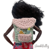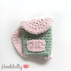 A crochet pattern for a mini backpack to use with a keychain or a 12" fashion doll.