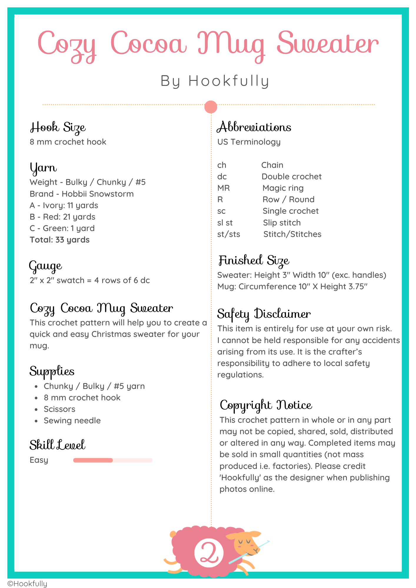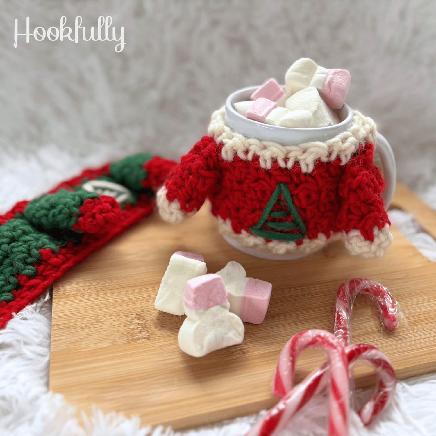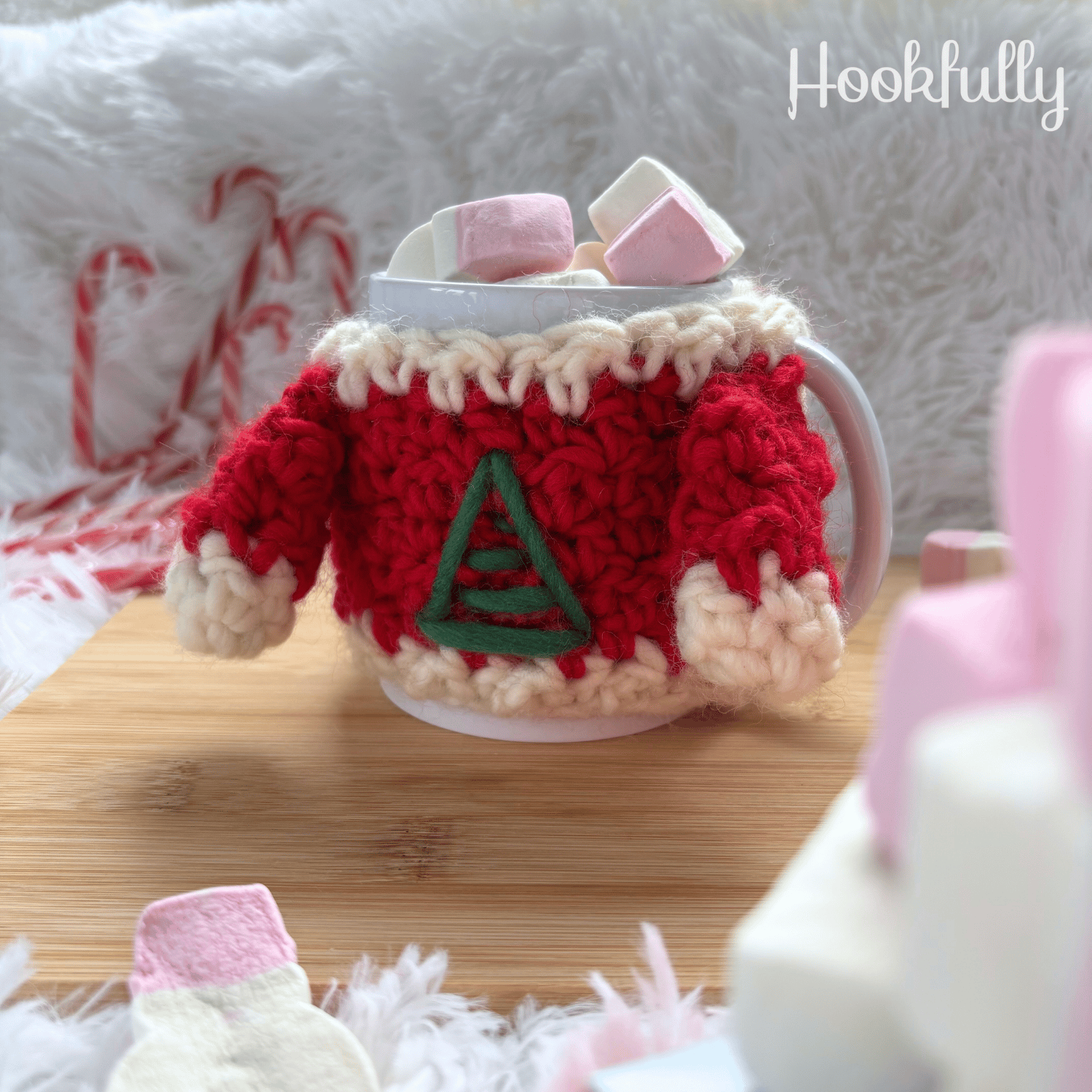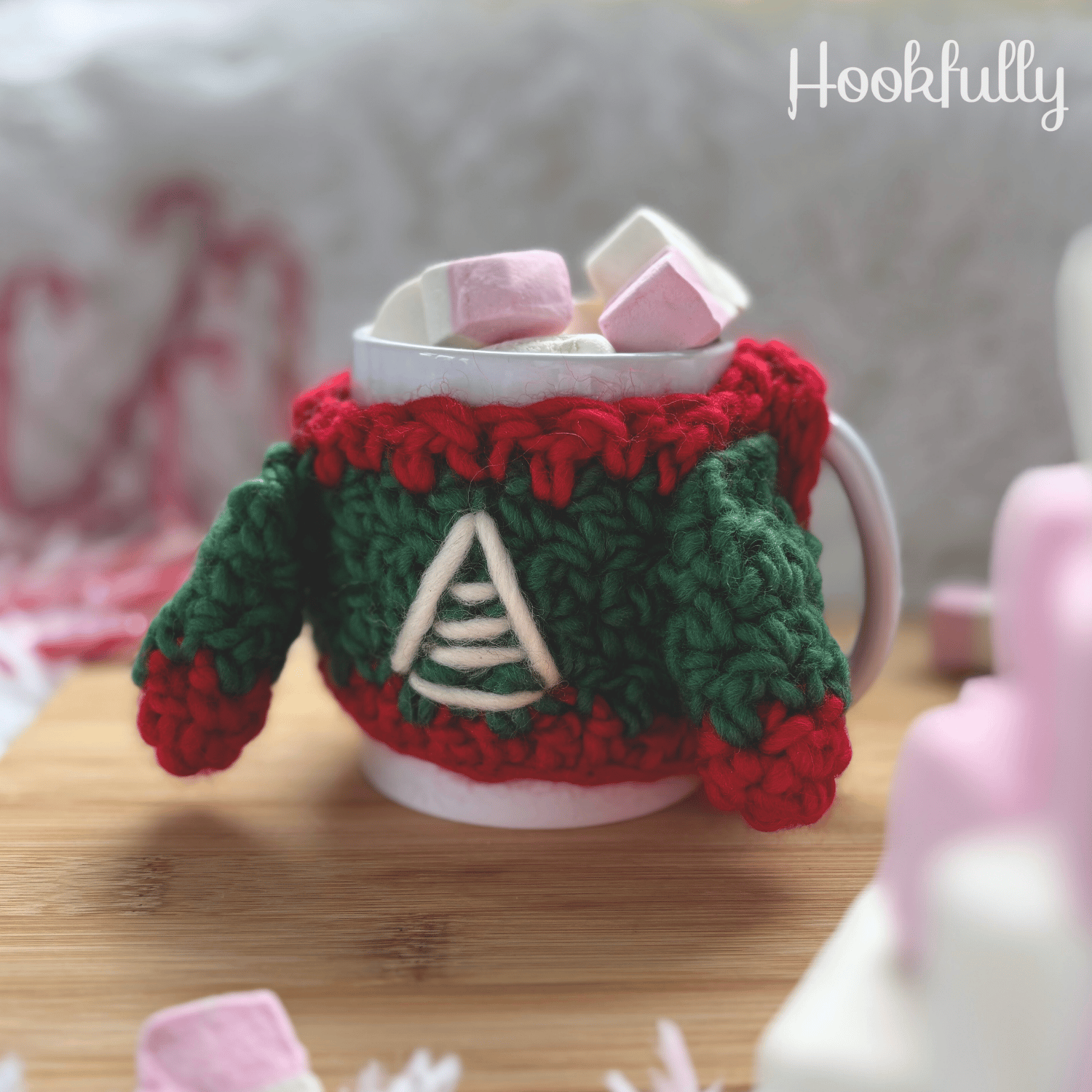 A crochet pattern for Christmas mug sweater.