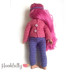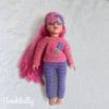 A crochet pattern for shooting star pyjamas and matching eye mask designed to fit 18" child dolls.