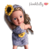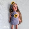 A crochet pattern for a shell stitch dress and headband designed to fit 18" child dolls.