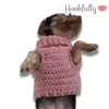 A crochet pattern for a turtleneck dog sweater that is designed to fit small dogs.