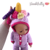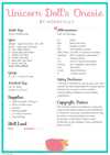A crochet pattern for an unicorn onesie to fit 14" baby dolls.